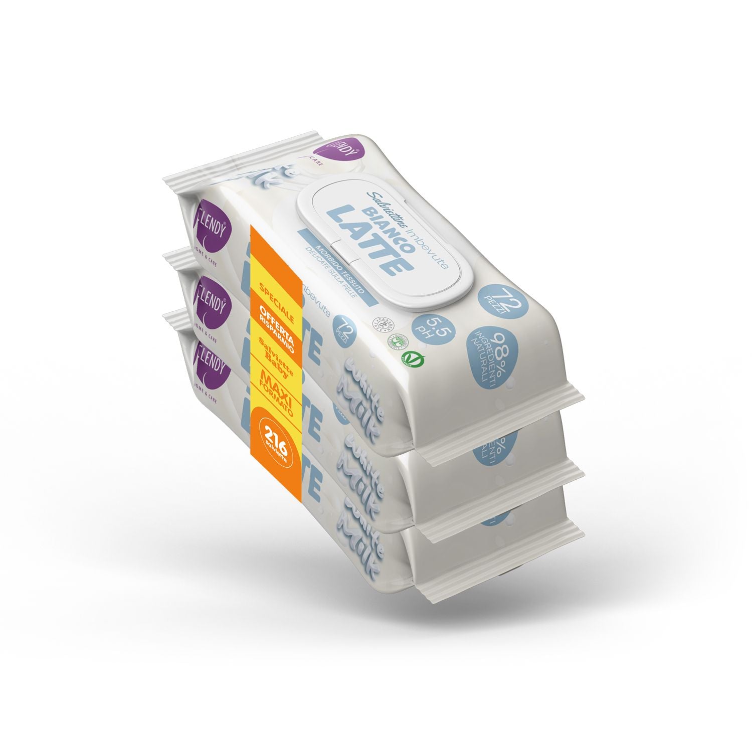 Scopri la convenienza del formato scorta 3x72 pezzi delle Salviettine Imbevute Bianco Latte Clendy, ideali per un utilizzo quotidiano e prolungato. Con 216 salviette totali, questa confezione è perfetta per chi cerca qualità, delicatezza e risparmio.