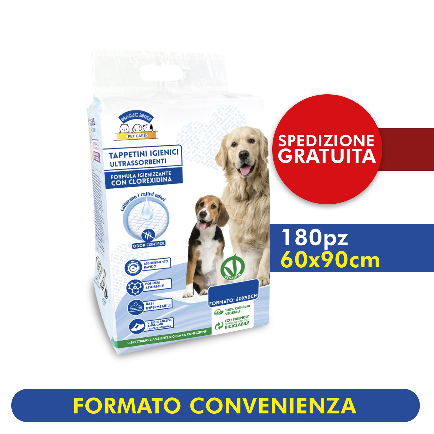 Confezione da 180pz - Tappetini Assorbenti Cani Magic Mike Clorexidina 60x90cm