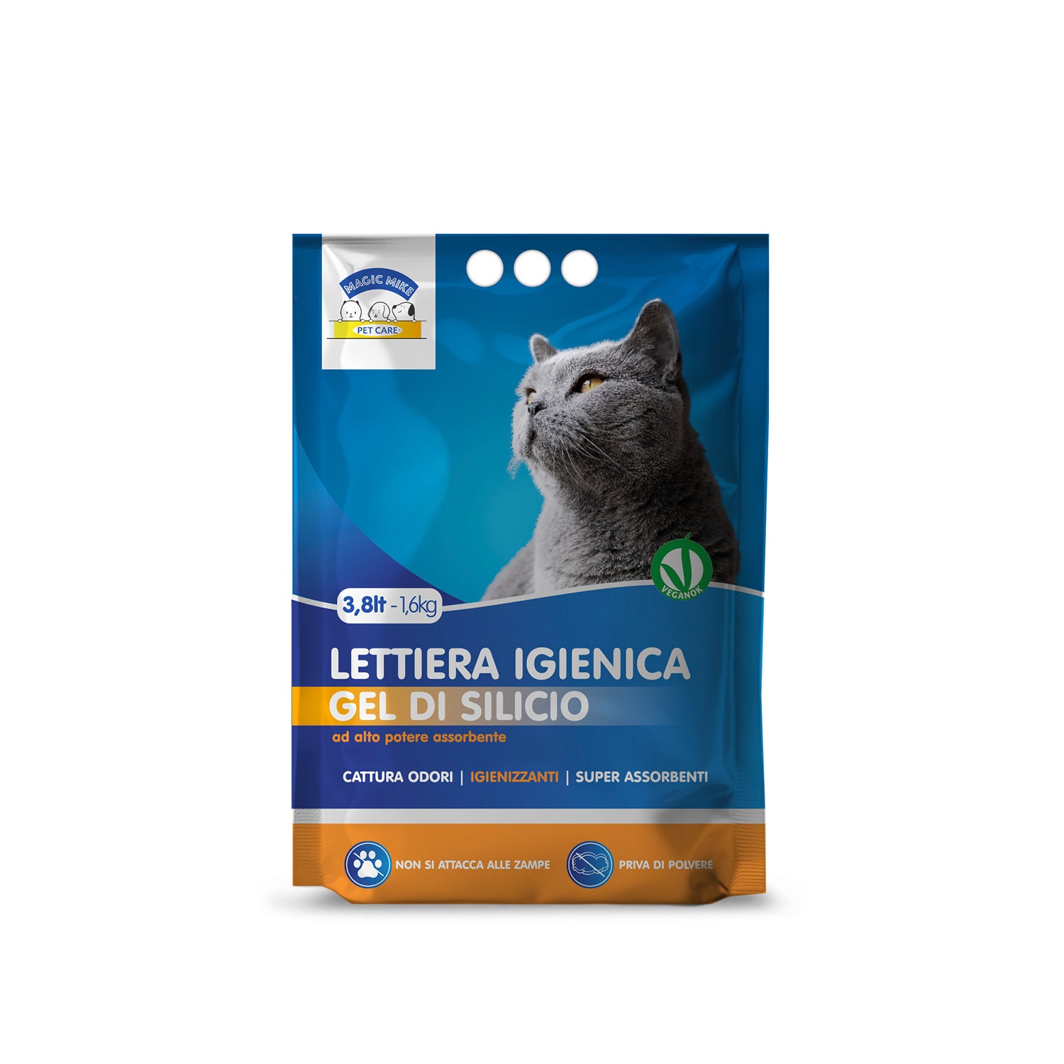 La lettiera igienica Magic Mike Pet Care in gel di silicio è la scelta ideale per chi cerca una soluzione pratica, igienica e ad alto potere assorbente. Grazie alla formula innovativa, trattiene i liquidi rapidamente e neutralizza i cattivi odori.
