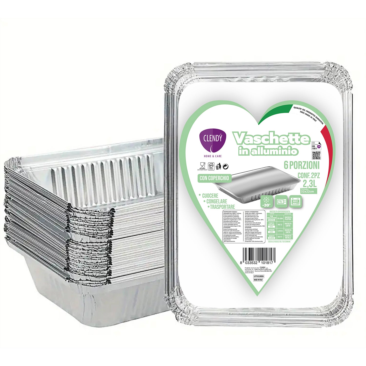 Le Vaschette in Alluminio Clendy sono ideali per cuocere, conservare, trasportare e riscaldare i tuoi cibi in modo sicuro ed efficiente. Perfette per forno, freezer e microonde, offrono massima resistenza e praticità grazie ai coperchi inclusi.