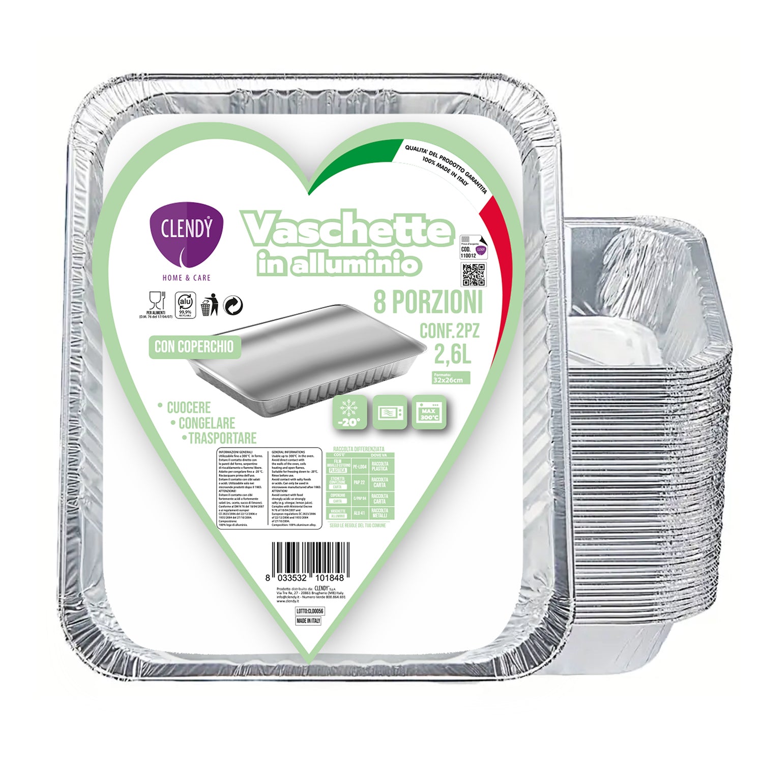 Le Vaschette in Alluminio Clendy sono ideali per cuocere, conservare, trasportare e riscaldare i tuoi cibi in...
