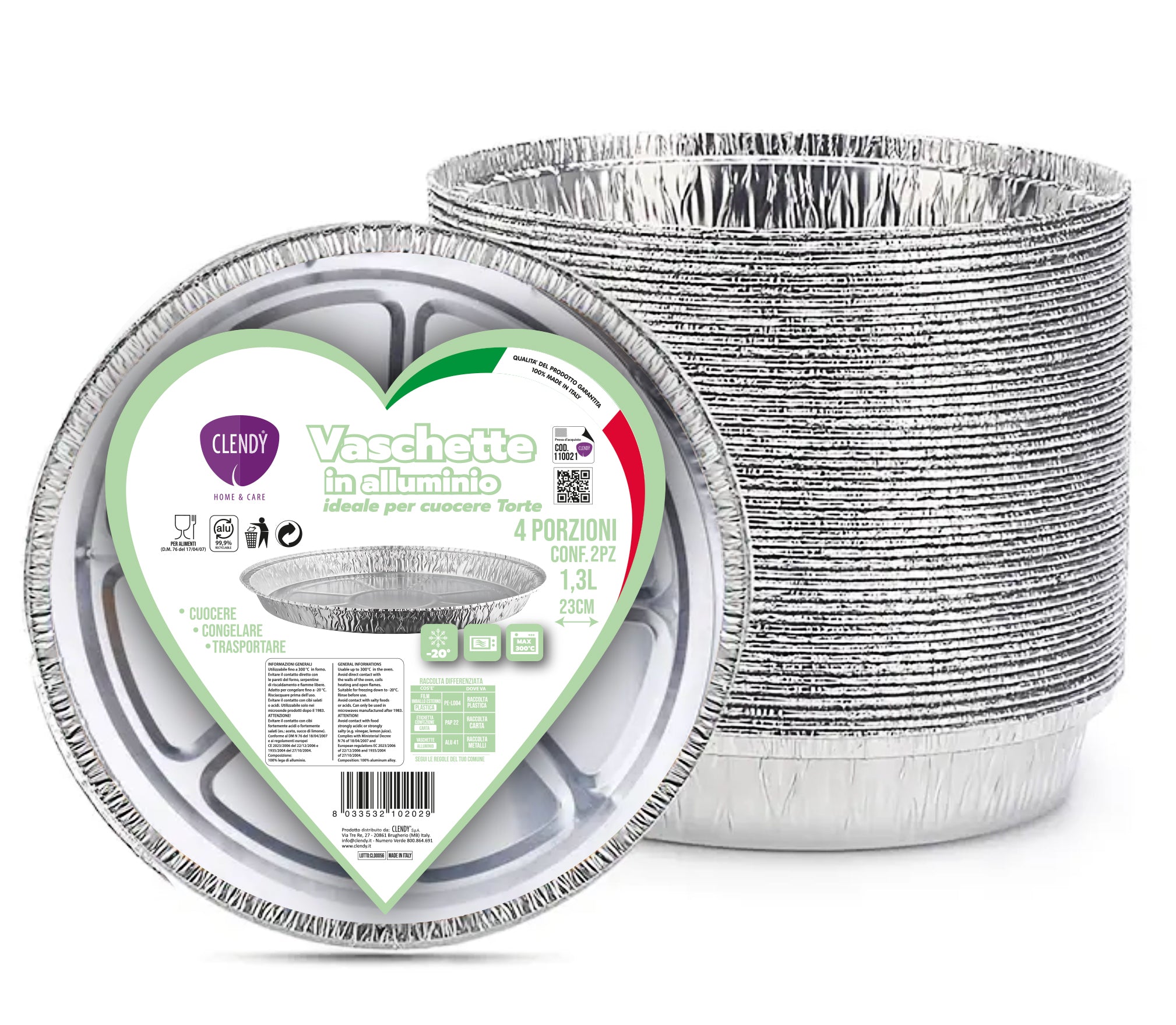 Le Vaschette in Alluminio Clendy sono progettate per cuocere, conservare e trasportare dolci, torte e altre preparazioni da forno. Garantiscono cottura uniforme e massima praticità.